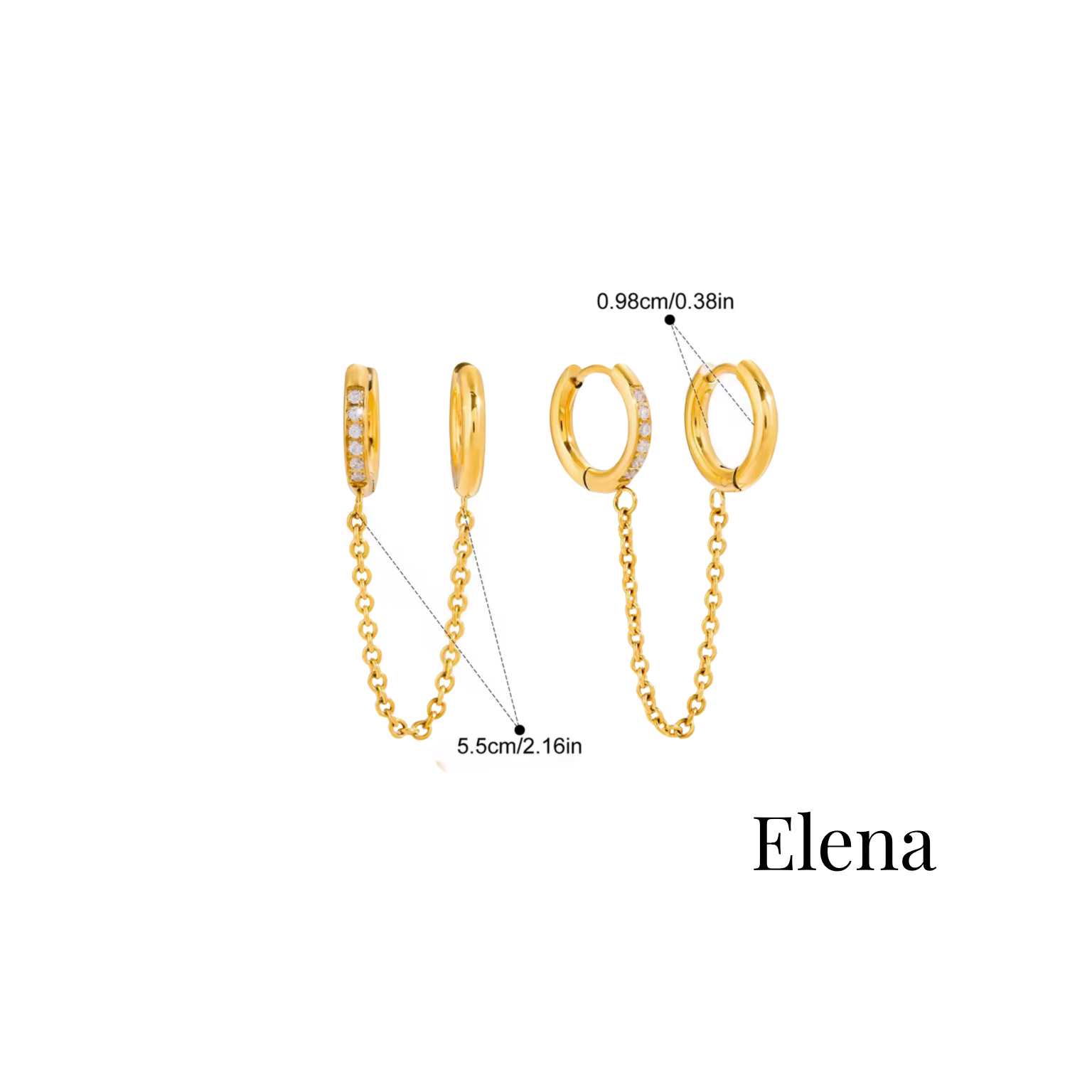 Los Elena Earrings de Brille Éternel son la definición de elegancia moderna con un toque atrevido. Confeccionados en 18K Gold Plated, combinan un diseño huggie clásico con zirconias brillantes y una delicada cadena que une ambos aros, creando un efecto sofisticado y contemporáneo. Su cierre huggie asegura comodidad y practicidad, mientras que su acabado hipoalergénico y waterproof garantiza durabilidad y confort en todo momento. Perfectos para personas que buscan piezas versátiles que eleven tanto un look casual como un atuendo de noche. Comprar ahora y añade a tu colección unos aretes que reflejan estilo, modernidad y lujo eterno.