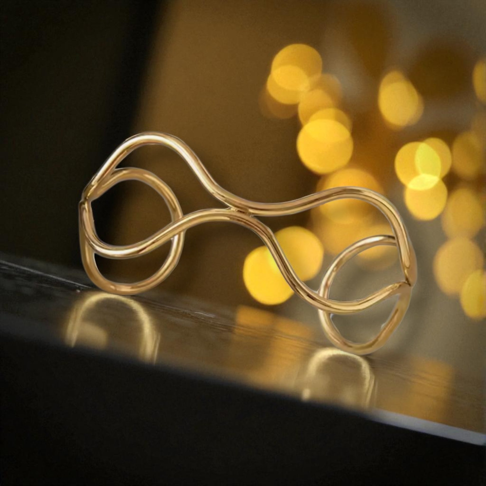 Brazalete cuff 18K Gold Plated con diseño orgánico y minimalista, elegante y versátil para cualquier ocasión.