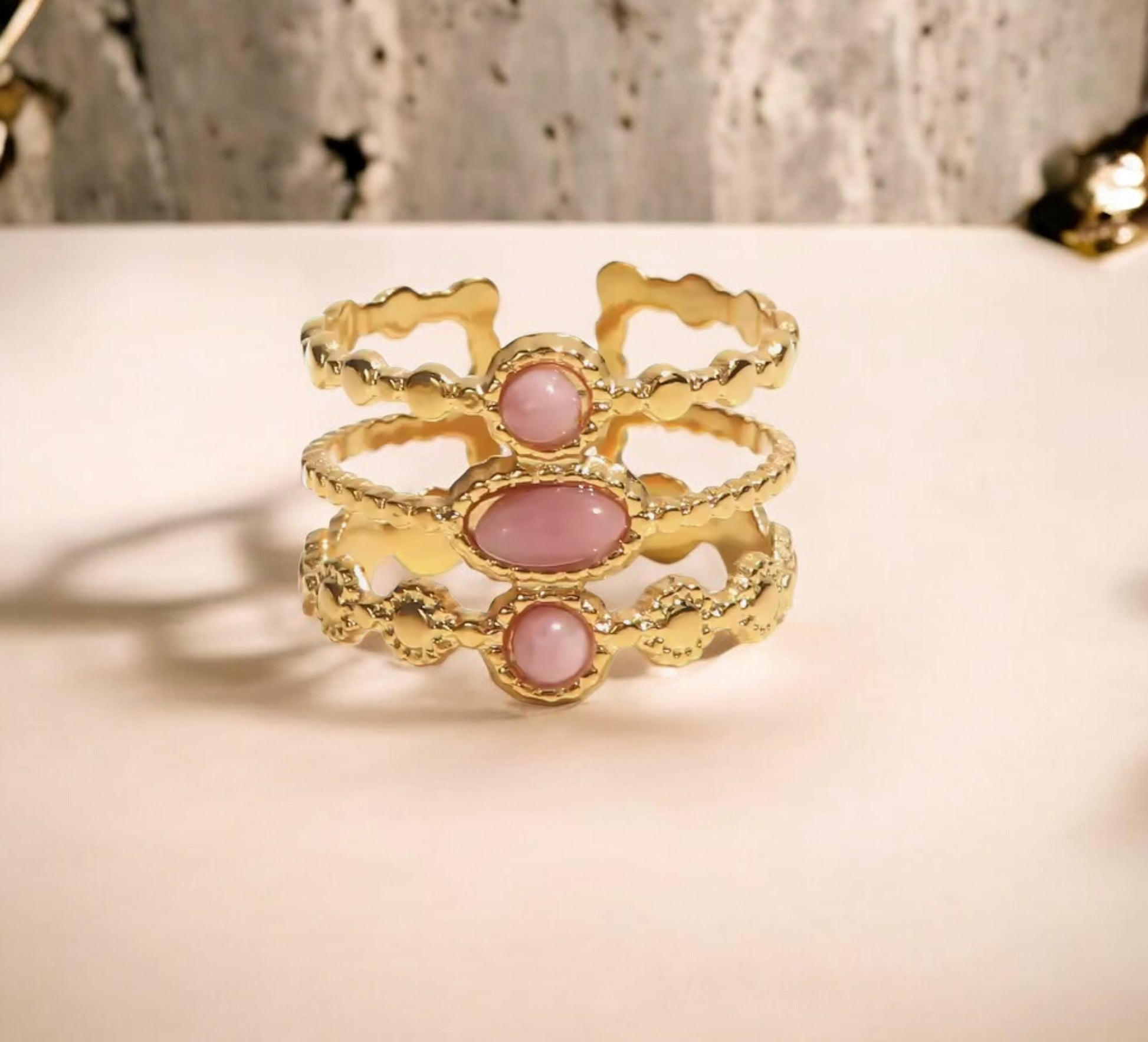 Sortija sofisticada en Stainless Steel y 18K Gold Plated, ajustable e hipoalergénica